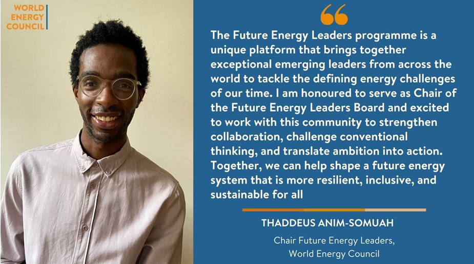 Die globale World Energy Council (WEC)-Gemeinschaft hat Thaddeus Anim-Somuah im Januar 2026 zum neuen Chair seiner Future Energy Leaders (FELs) gewählt. Die FELs sind das globale Nachwuchsnetzwerk des WEC, ähnlich dem Young Energy Professional (YEP)-Programm des Weltenergierat – Deutschland auf nationaler Ebene. Der Weltenergierat darf in regelmäßigen Abständen (in der Regel einmal jährlich) eine / einen deutschen Kandidat:in aus dem Kreis der YEPs für das globale Netzwerk nominieren. Aktuell vertreten zwei YEPs die deutsche Stimme im FEL-Programm.